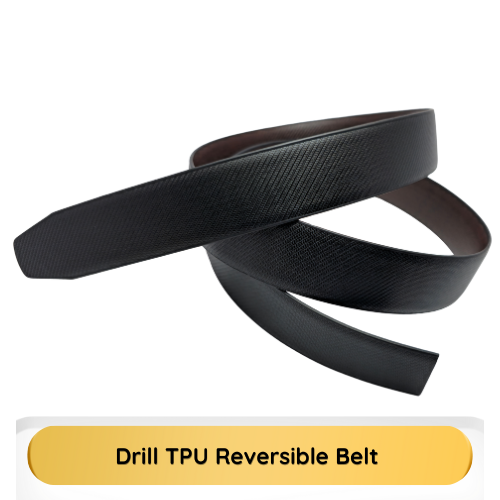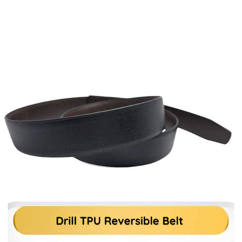 The Drill Style Reversible TPU Belt Strip is a modern, two-in-one accessory. This 35mm wide strip is made from highly durable TPU (Thermoplastic Polyurethane), easily reversible between classic Black and versatile Brown. Measuring 48 inches in length and weighing approx. 165 grams, this free-size strip is perfect for use with your own interchangeable buckle (buckle not included).