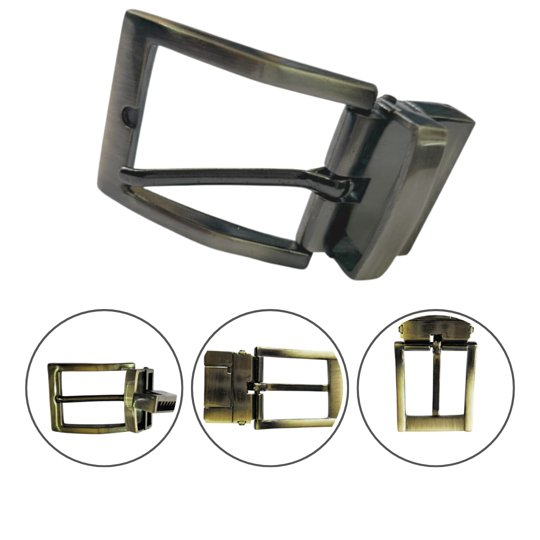 The Turning Kanta 4No. Buckle (SKU: 4NOTK35MM) is a high-quality component specifically designed for reversible belts. This robust 35mm wide buckle features the popular Reversible Turning Kanta (Pin Buckle) mechanism, allowing the wearer to easily twist the buckle and switch between the two sides of a dual-color strap.
